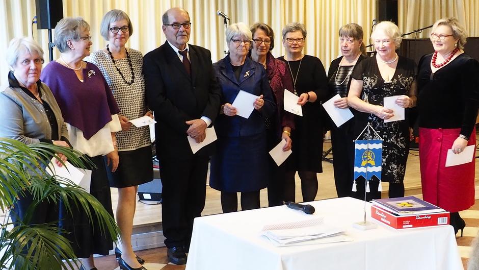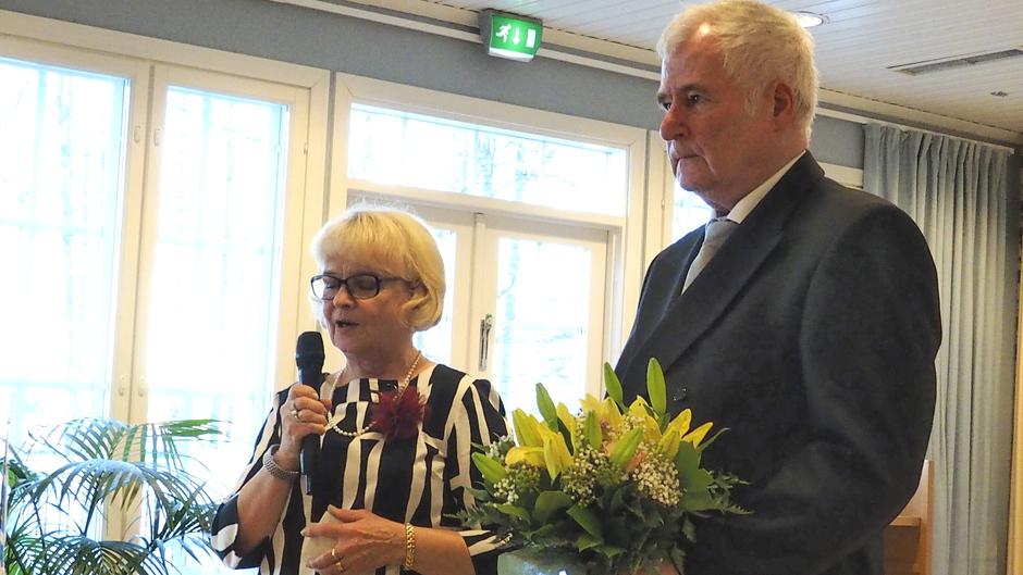 Porvoon kaupungin työntekijöiden seniorien terveydyksen toi puheenjohtaja Leena Lipponen puolisonsa Sepon kanssa.
