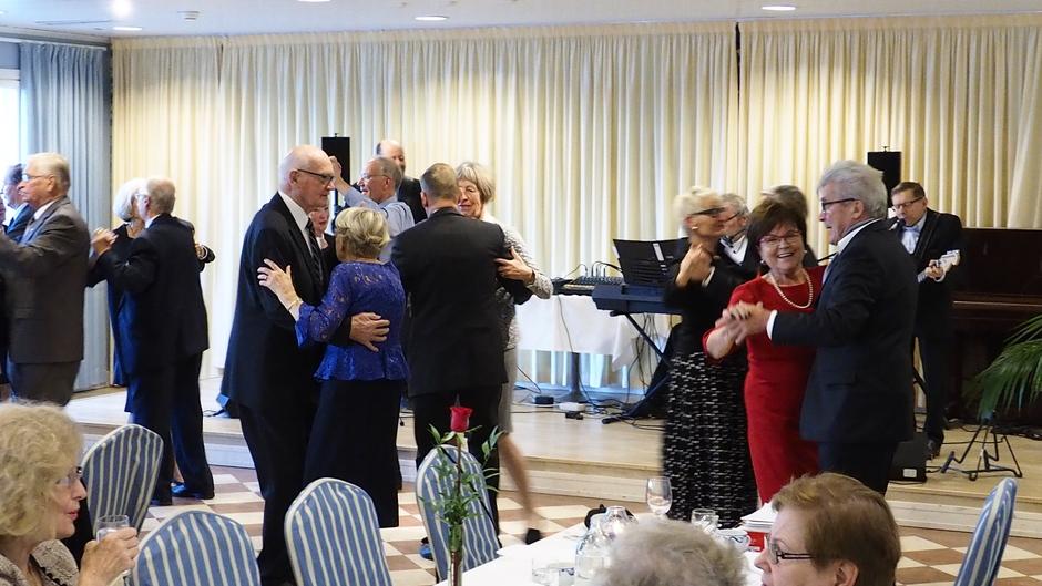 Iloisen tilaisuuden lopuksi tanssia Mielihyvä-orkesterin tahdissa