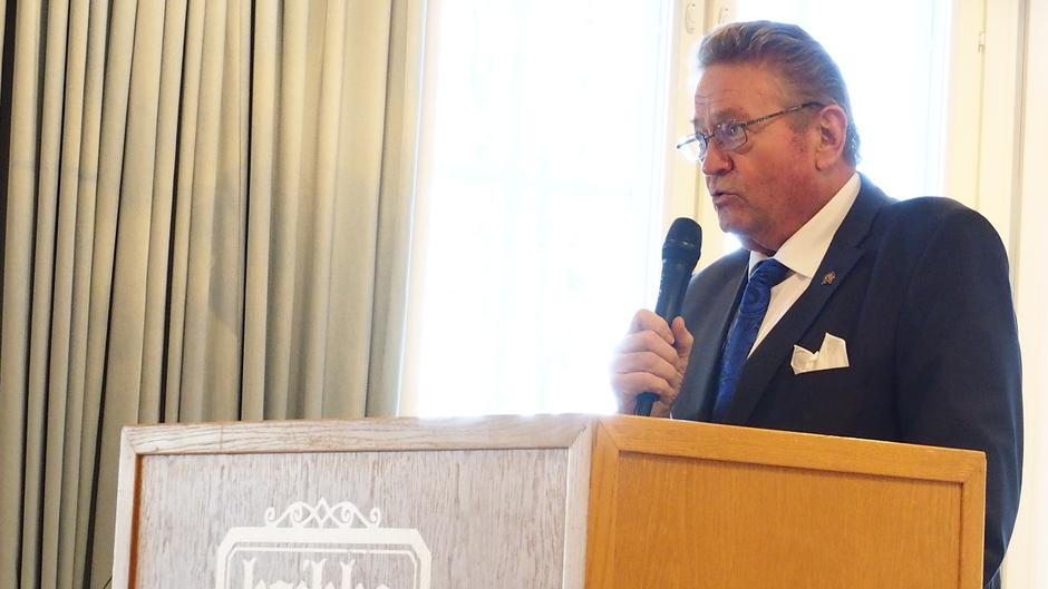Kansallisen senioriliiton puheenjohtaja Tapani Mörttinen pitämässä juhlapuhetta.
